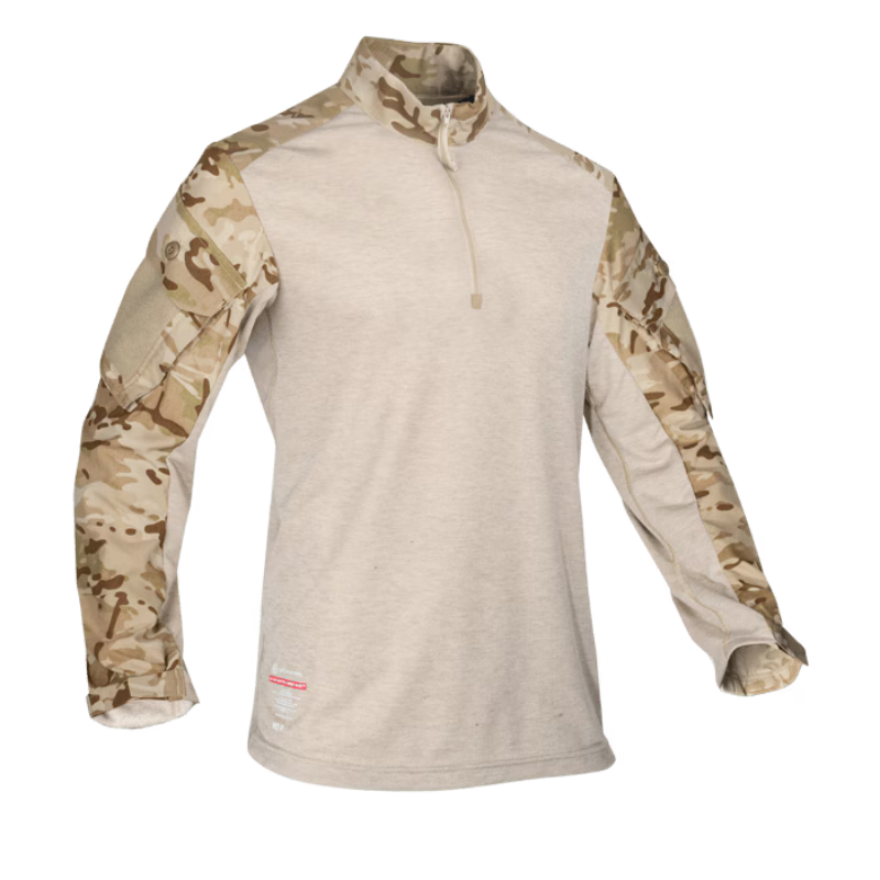Our lightest, most breathable Combat Shirt. Engineered specifically for arid environments, our next generation Hot Weather Combat Apparel is extremely lightweight and designed to be worn under body armor and features an extremely lightweight, fast-drying nylon ripstop fabric with MCS Blocker™ to wick away moisture and provide UV protection. Fast-drying, moisture wicking Polartec® Power Dry® mesh jersey with antimicrobial X-Static fiber keeps you cool and dry. Extremely lightweight nylon ripstop reinforces areas of high wear. Minimal zip collar allows for easy donning/doffing. Overall minimal design to reduce weight and thermal burden. Made in the US from US materials.